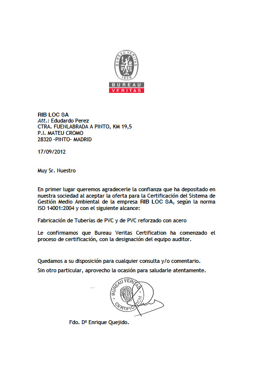 Nuestros productos y sistemas están certificados por organismos acreditados, al igual que nuestros proveedores de materia prima y productos complementarios. Nos sentimos orgullosos de recalcar el hecho de que todo nuestro sistema productivo y su resultado, nuestros sistemas de canalización, cumplen con todos los requisitos medioambientales establecidos por la normativa vigente.